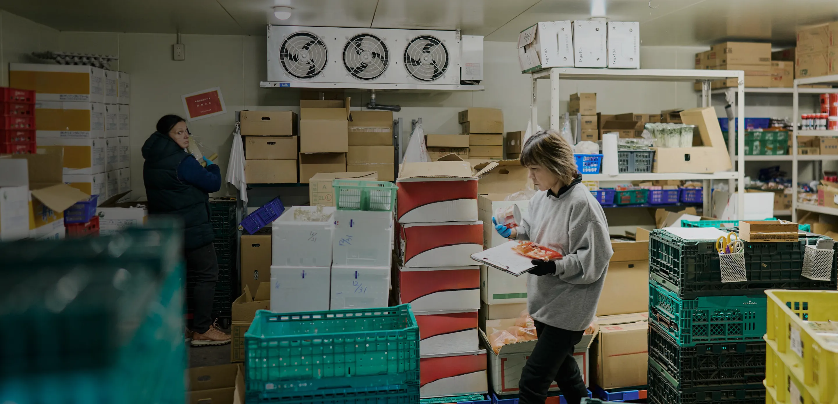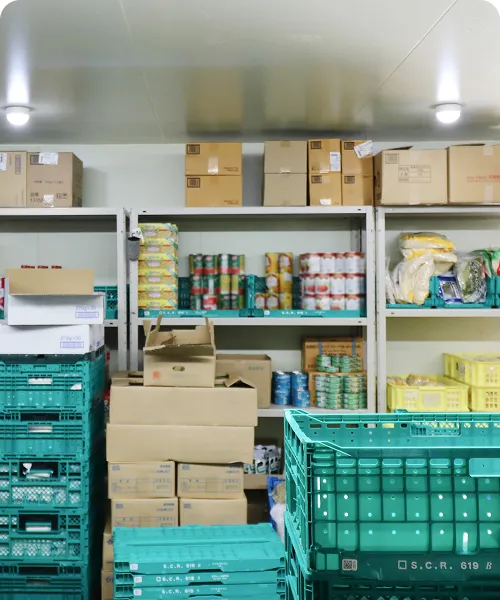 生産者や市場から仕入れた食材を大切に保管し、仕分け・販売・配送までワンストップでお届けします。