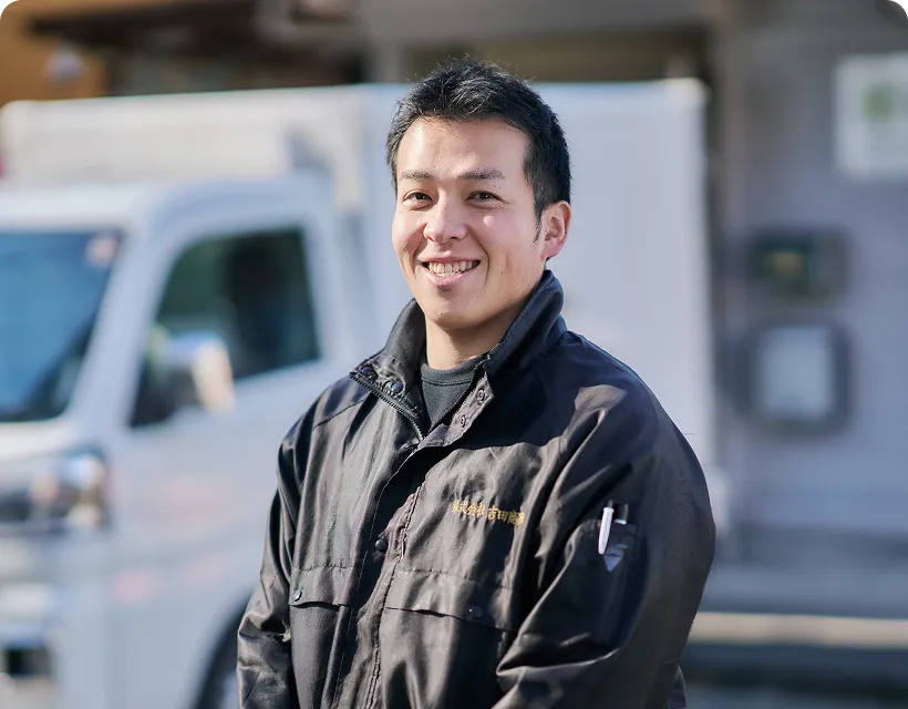 前職がドライバーで、自宅近くで仕事を探していた時にチラシで吉田商事を知りました。 作業系の仕事は「黙々と一人で進める」イメージがあり、元ドライバーの自分に合うか少し不安でしたが、実際はスタッフ同士のコミュニケーションがとても多く、驚くほど楽しいです!社長の温かいお人柄が、そのまま職場の明るい雰囲気やスタッフの笑顔に繋がっているのだと実感しています。